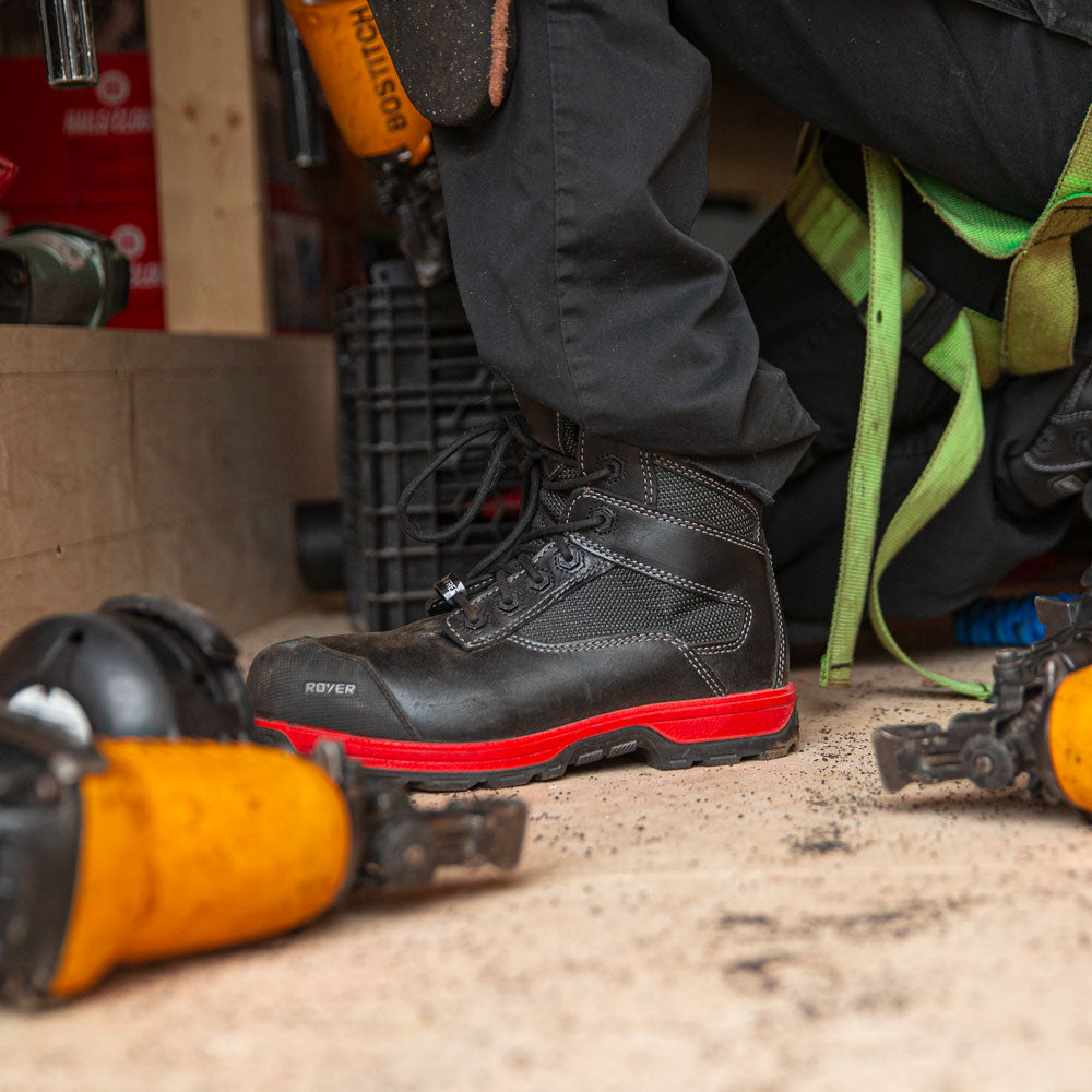 8" work boots with abrasion-resistant fabric and GTR red sole